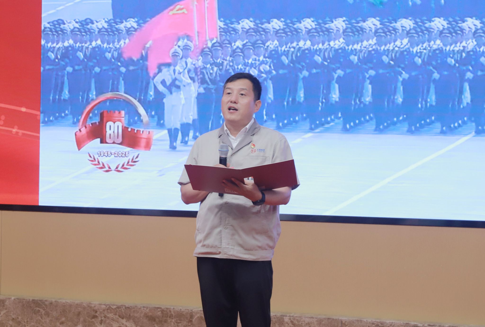 隨著九三閱兵視頻片段的播放,樊志勤走上宣講臺,用 “感謝、感動、震撼、責(zé)任” 四個關(guān)鍵詞,將自己的觀禮經(jīng)歷娓娓道來?!爱?dāng)坦克方隊走過時,感受到的是國家軍事力量的強大,想到的是我們太重人為國家重點工程研制的大型裝備,作為一名太重人也能為國防建設(shè)出一份力,我驕傲!”他哽咽著講述觀禮時的感動,每一個細節(jié)都讓現(xiàn)場職工深受觸動。“我要帶著這份感動,在自身崗位上鑄就更多國之重器,為太重75周年獻禮,為民族復(fù)興添磚加瓦!”話語未落,全場已響起雷鳴般的掌聲。