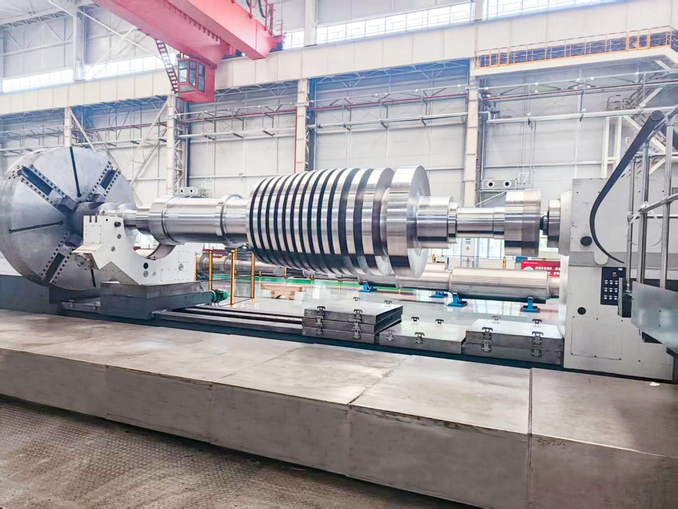 轉(zhuǎn)子作為工業(yè)透平汽輪機(jī)的核心旋轉(zhuǎn)部件,承擔(dān)著將蒸汽的熱能轉(zhuǎn)化為電能和機(jī)械驅(qū)動(dòng)能的關(guān)鍵作用,廣泛應(yīng)用于能源、化工等眾多重要行業(yè)。此次交付的一體化轉(zhuǎn)子,總長(zhǎng)7米、直徑1.4米、重28噸,以高度緊湊結(jié)構(gòu)實(shí)現(xiàn)了性能躍升,不僅進(jìn)一步豐富了公司轉(zhuǎn)子系列產(chǎn)品型譜,更彰顯了公司在高附加值、高性能核心部件制造領(lǐng)域的雄厚實(shí)力。
