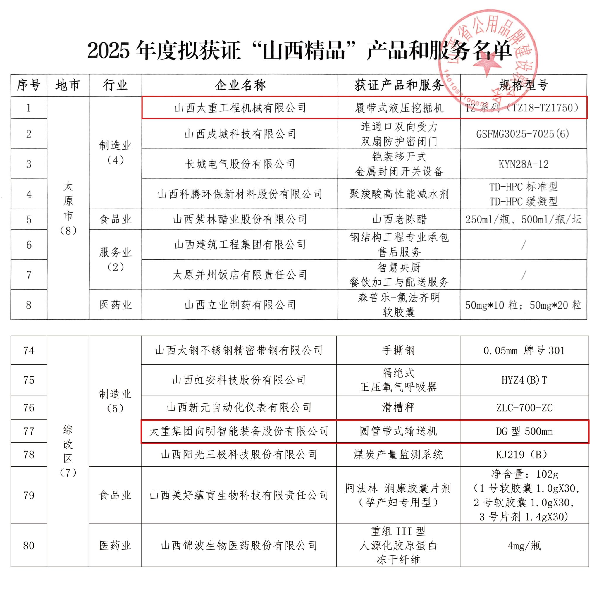 做強(qiáng)“山西精品”,擦亮“山西品牌”。近日,山西省公用品牌建設(shè)聯(lián)合會(huì)公布了2025年度擬獲證“山西精品”產(chǎn)品和服務(wù)名單。太重兩款產(chǎn)品——履帶式液壓挖掘機(jī)和圓管帶式輸送機(jī)憑借過硬實(shí)力成功入選。這是繼鑄造起重機(jī)、城軌車輪后,太重產(chǎn)品再度獲得該項(xiàng)榮譽(yù)。